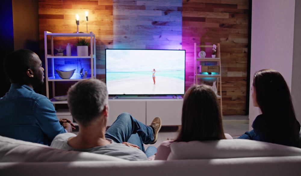 If you haven’t heard of bias lighting, get ready to level up. Bias lighting involves adding soft light behind a screen that emanates out and around the edges. This gentle glow minimizes the harsh contrast between a bright screen and a dark room, which makes it easier on the eyes. Bias lighting can be used on any screen or monitor (hello, work monitor upgrade), but it’s an especially effective way to make movie viewing more comfortable.