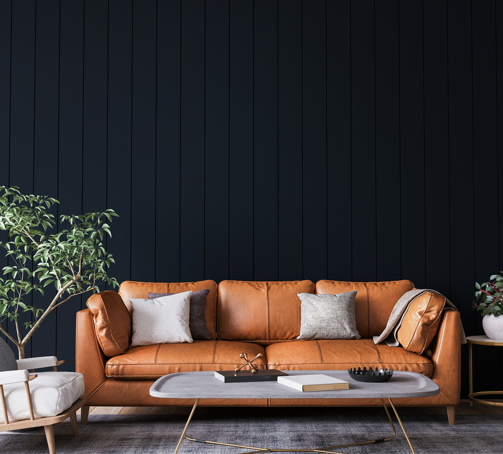 This living room took a bold color and ran with it. The navy blue is a stunning contrast to this cozy tan leather couch. If we could copy and paste this look into our homes, we would! The neutrals pop against the accent wall and we couldn’t be more obsessed.