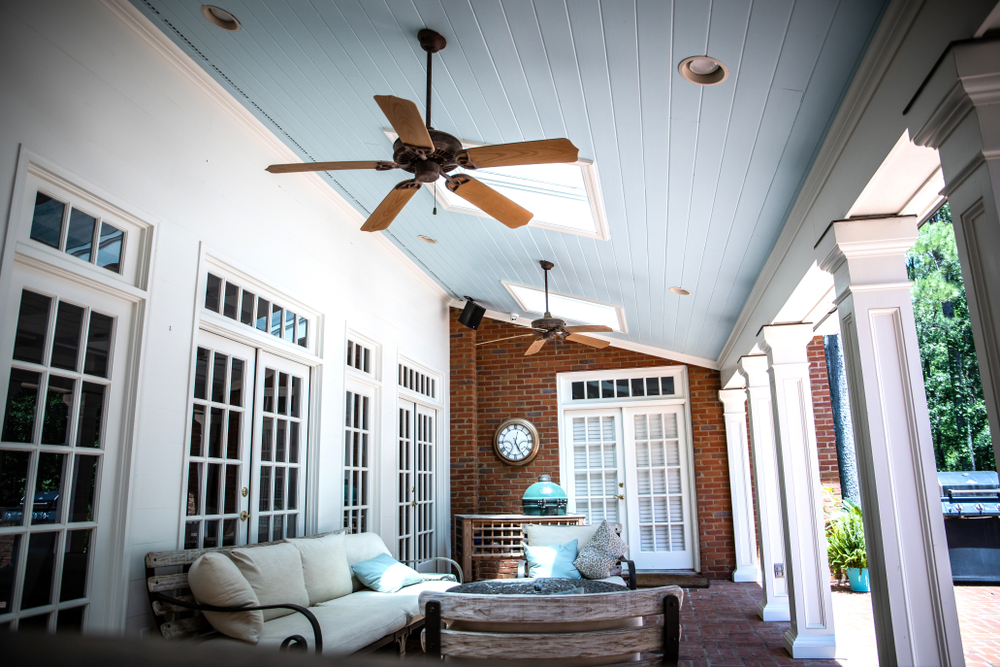 This sconce has a little more flair but is still a classic style you won’t need to replace when trends change. We also giving this porch bonus points for the fan above the rocking chairs! There’s nothing better – or more refreshing – than a cool breeze in the summertime.