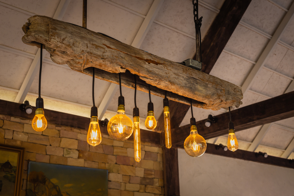 Furniture and fixtures made from natural elements set organic modern interiors apart from other design styles. This beautiful, rustic driftwood light fixture with warm Edison bulbs in varying shapes is simply stunning and unlike anything you’ve likely seen before. For help finding your own unique, nature-inspired light fixtures, check out Super Lite!